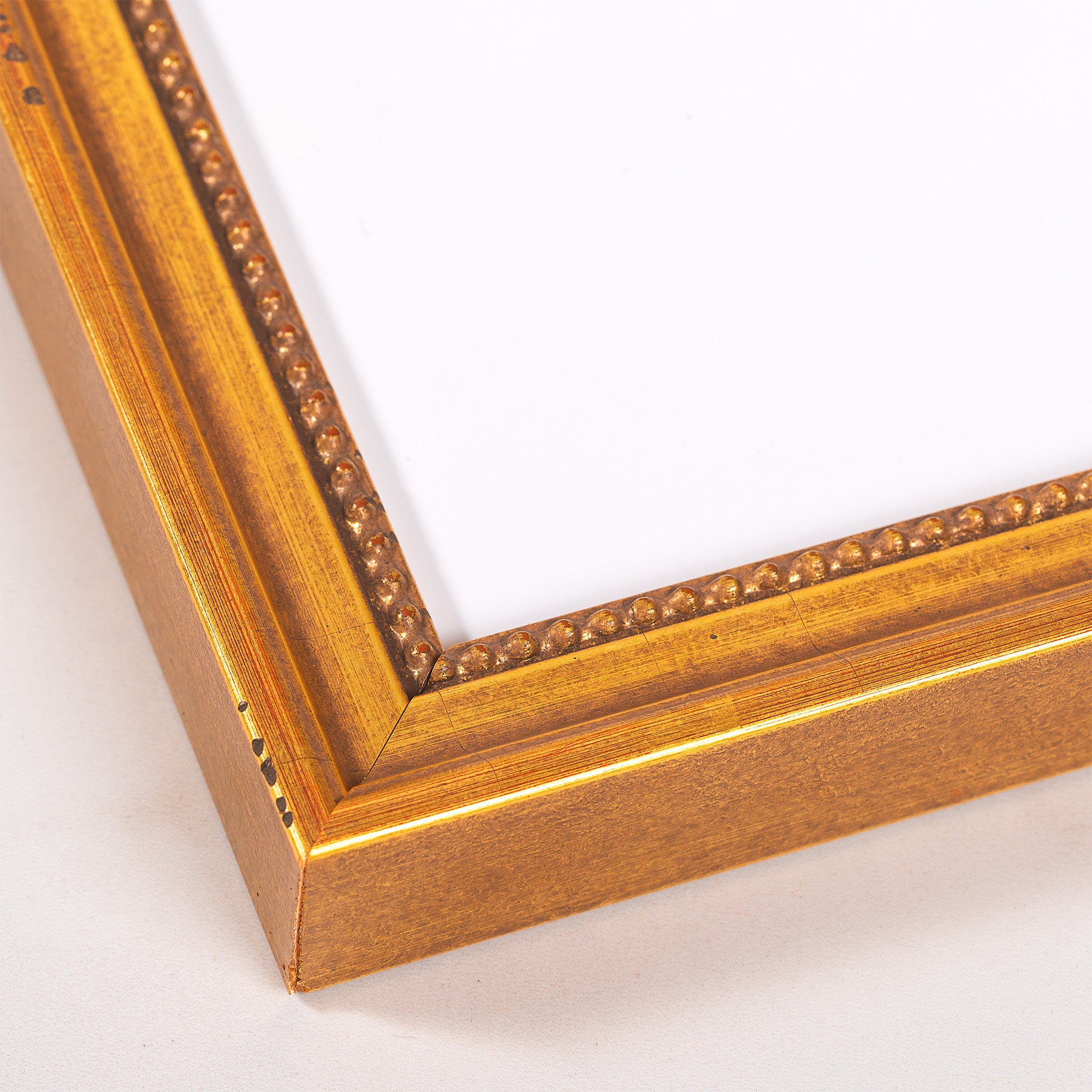 Your order includes your choice of an ornate gold wood frame with Florentine scrolling, or an equally lovely gold beaded wood frame. This is a piece handcrafted just for you.