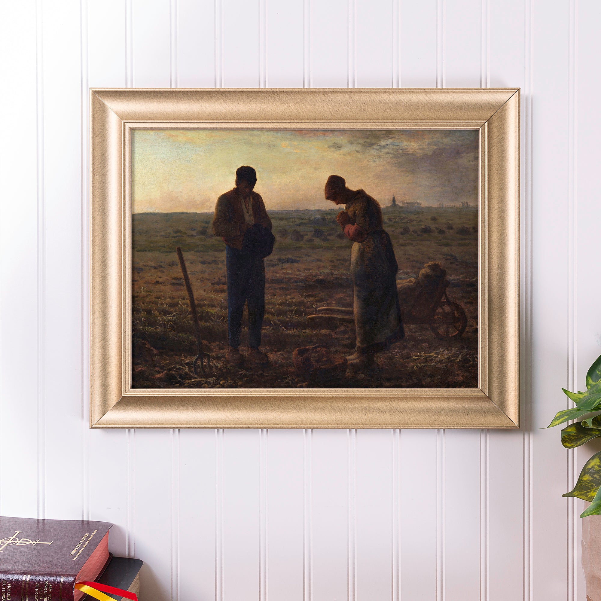 The Angelus Antique Gold Framed Print captures the beloved Catholic painting "The Angelus" by Jean-Francois Millet in vivid color and timeless elegance. Exquisitely framed in antique gold, it adds sophistication to any decor. Available in multiple sizes, this piece is a beautiful reminder to prioritize faith, perfect for homes or sacred spaces. Includes wall hanging hardware. Exclusively at The Catholic Company.