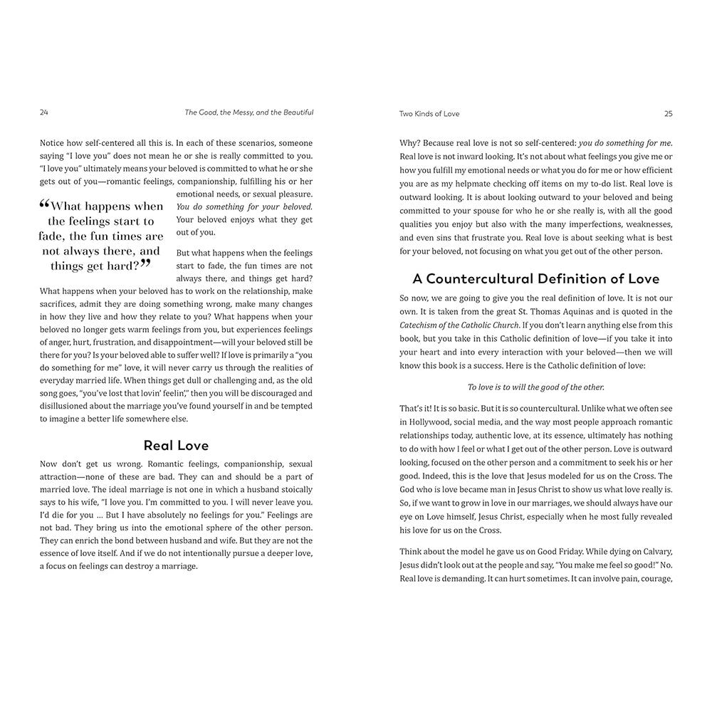 In good times and in bad, in sickness and in health, God has an incredible vocation for all for spouses. The Good, the Messy, and the Beautiful goes into the nitty-gritty, explaining what to do when reality hits?when the rubber hits the road. A practical book for engaged and married couples that will help you with such issues as: