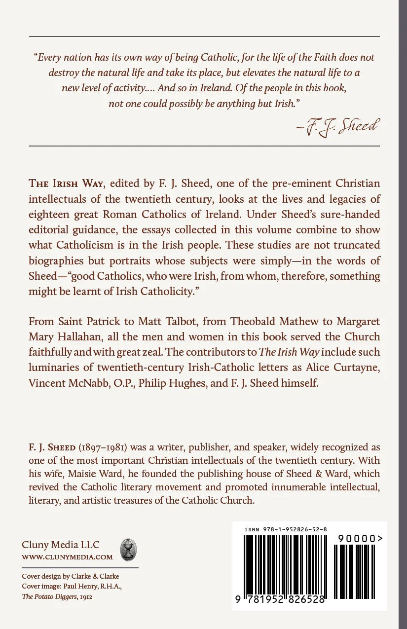 From Saint Patrick to Matt Talbot, from Theobald Mathew to Margaret Mary Hallahan, all the men and women in this book served the Church faithfully and with great zeal. The contributors to The Irish Way include such luminaries of twentieth-century Irish-Catholic letters as Alice Curtayne, Vincent McNabb, O.P., Philip Hughes, and F. J. Sheed himself.