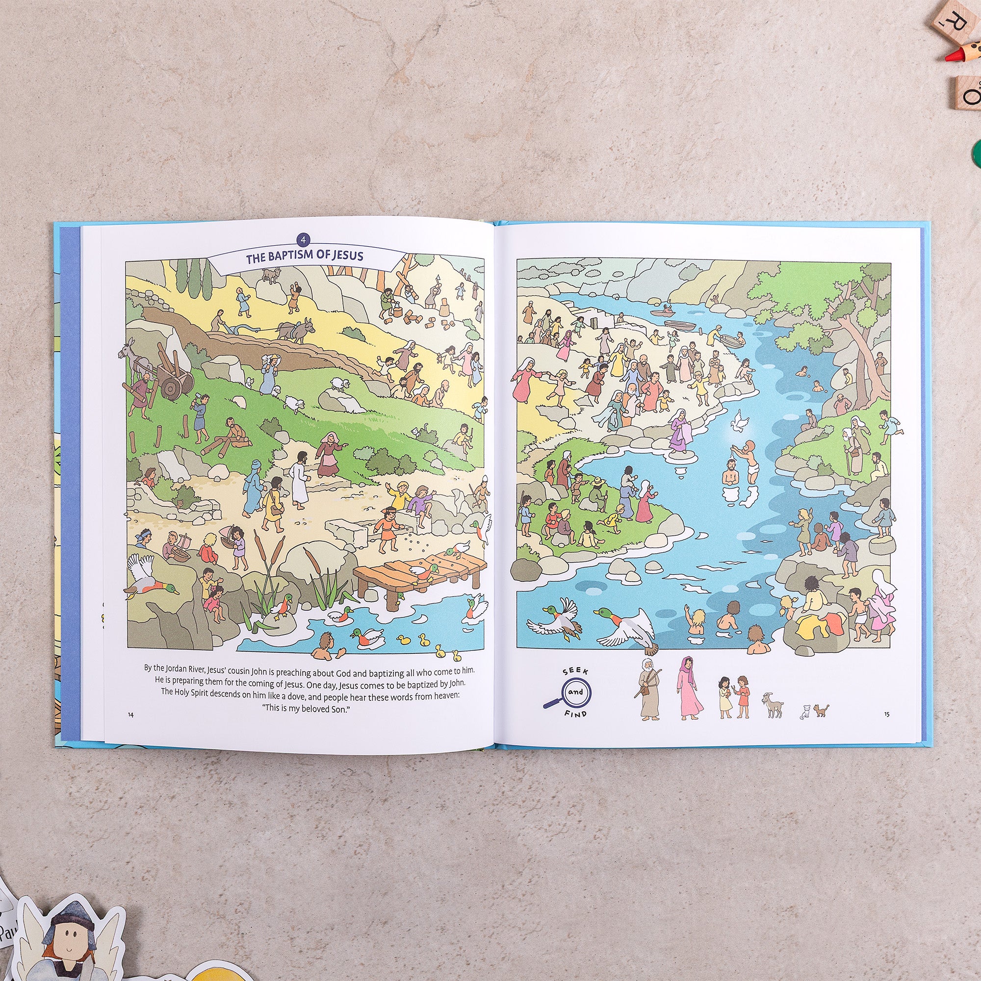 The Life of Jesus: Seek and Find Series (Book 1) is a captivating children's book where young readers follow Sarah and Simon back in time to witness twelve pivotal events in Christ's life. This interactive hardcover, authored by Geert De Sutter, brings stories like The Birth of Jesus and The Resurrection to life in colorful detail, engaging children in a historical adventure.