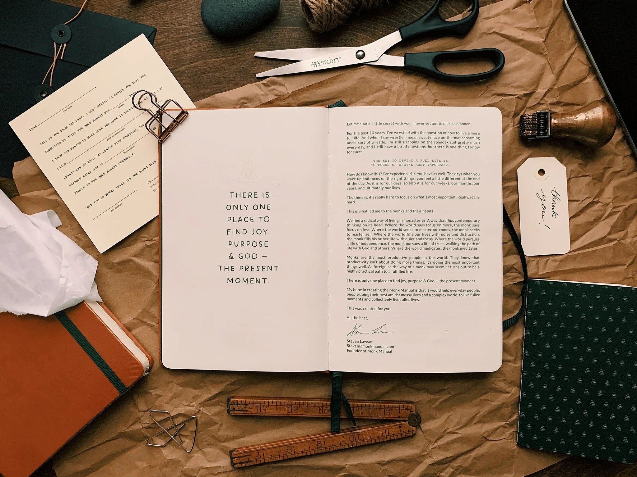The Monk Manual 90 Day Planner helps you live with purpose, productivity, and presence by integrating spirituality with daily life. Inspired by monastic wisdom and backed by science, it includes tools for gratitude, goals, and spiritual reflection. Choose the 90 Day Planner or Pocket Journal Extension Pack for year-round use.