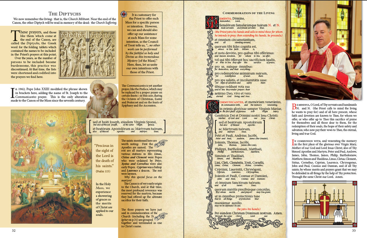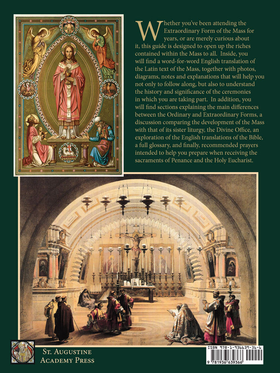 Inside, you will find a word-for-word English translation of the Latin text of the Mass, together with photos, diagrams, notes and explanations that will help you not only to follow along, but also to understand the history and significance of the ceremonies in which you are taking part. In addition, you will find sections explaining the main differences between the Ordinary and Extraordinary Forms, a discussion comparing the development of the Mass with that of its sister liturgy, the Divine Office, an exploration of the English translations of the Bible, a full glossary, and finally, recommended prayers intended to help you prepare when receiving the sacraments of Penance and the Holy Eucharist.