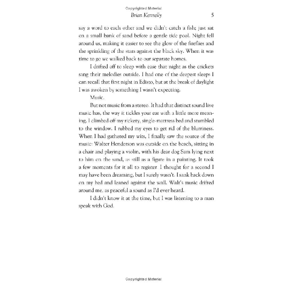 Buck Washington, seeking a peaceful retirement on Edisto Island, South Carolina, instead finds himself drawn into a mystery by his intriguing violin-playing neighbor, Walt—leading to an adventure that will change his life forever.
