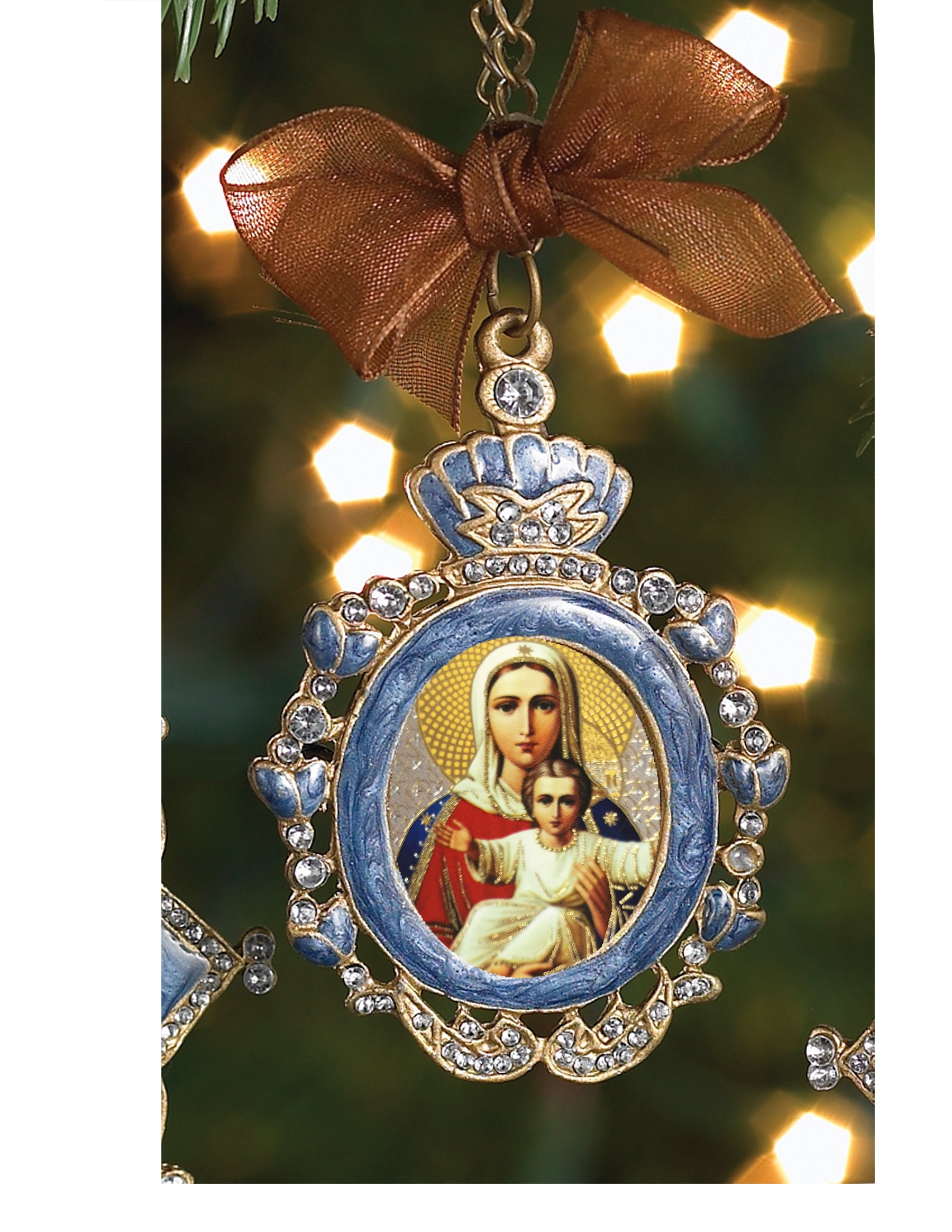 This Ornament captures the sacred Ukrainian iconography of the Madonna & Child, known as "I am With You." Framed in silver with clear crystal accents and blue enamel, it offers a unique, faith-filled decor for any space. Versatile for use as a Christmas ornament or year-round decoration, its exquisite design symbolizes a thoughtful gift supporting Christians in Ukraine.