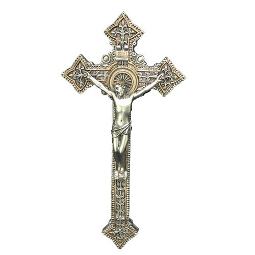 The Veronese Crucifix is a beautifully crafted piece with a pewter-style finish, measuring 9 inches in height. Part of the esteemed Veronese Collection, this crucifix features detailed craftsmanship. With its compact dimensions of 4 inches in width and 1 inch in depth, it is a perfect addition to any sacred space or for personal devotion.