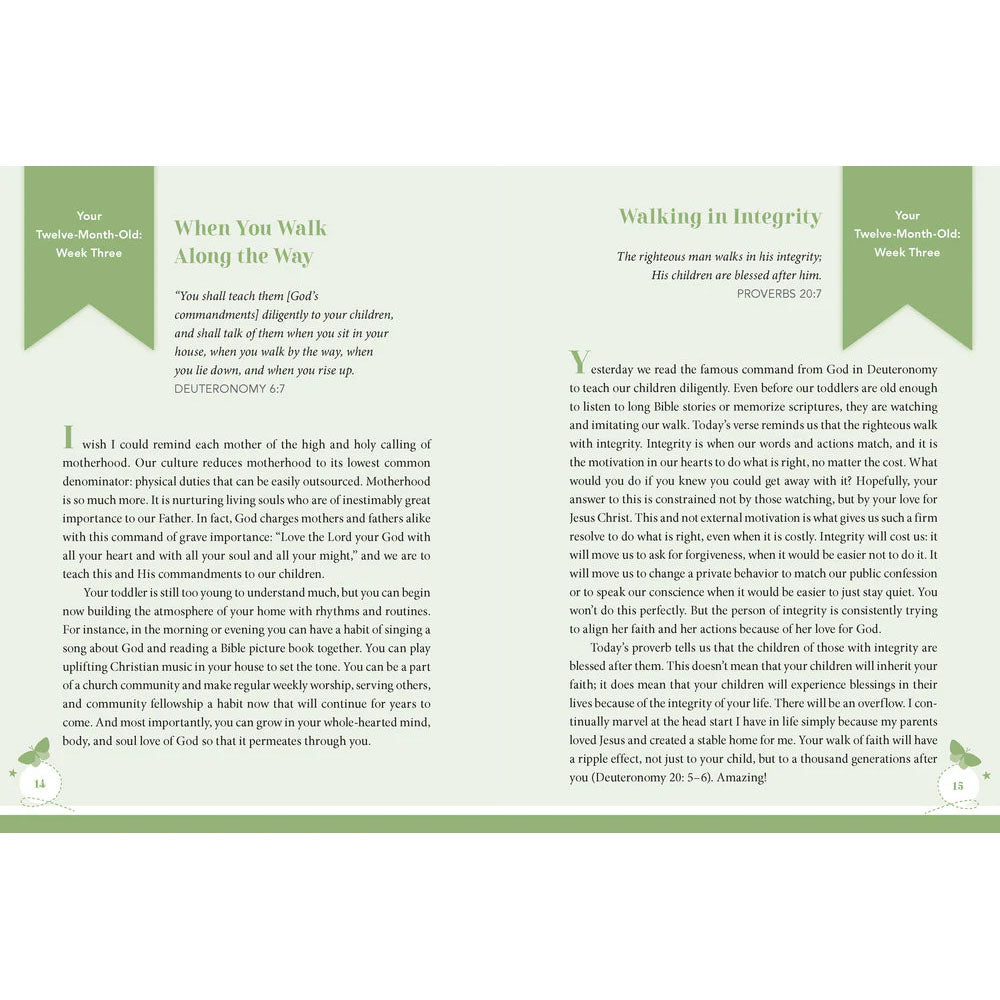 - Three Scripture-based devotions each week centered on spiritual and parenting themes such as resting, feeding, and speaking