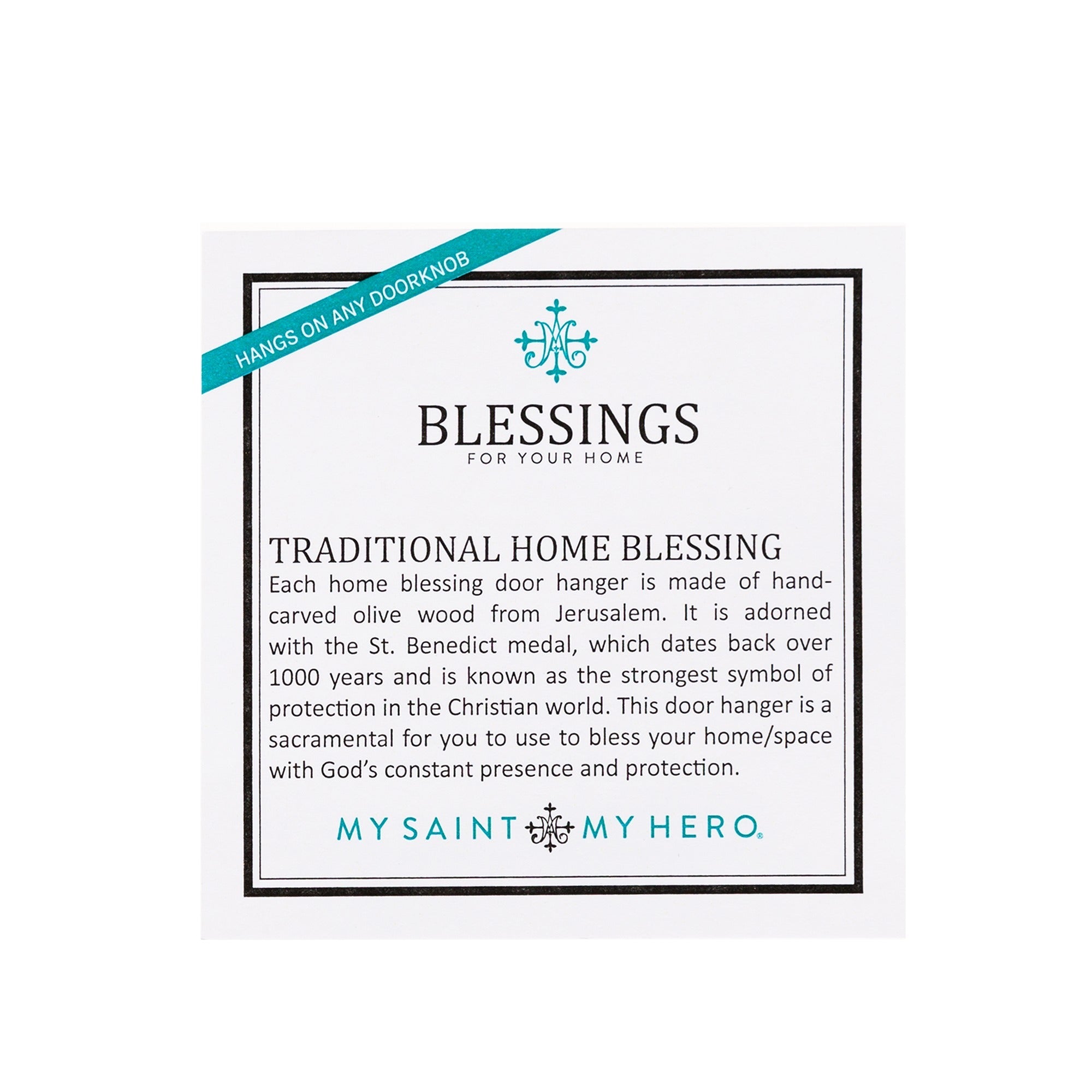Enhance your home's spiritual protection with the Wood Bead St. Benedict Door Hanger from the My Saint My Hero Collection. Crafted with hand-carved Jerusalem olive wood beads and howlite cross on ivory cording, it features St. Benedict, St. Michael, and Miraculous Medals. Perfect for doors in homes, apartments, or nursing homes, this sacramental piece is an ideal gift, handwoven with love and prayer in Medjugorje.