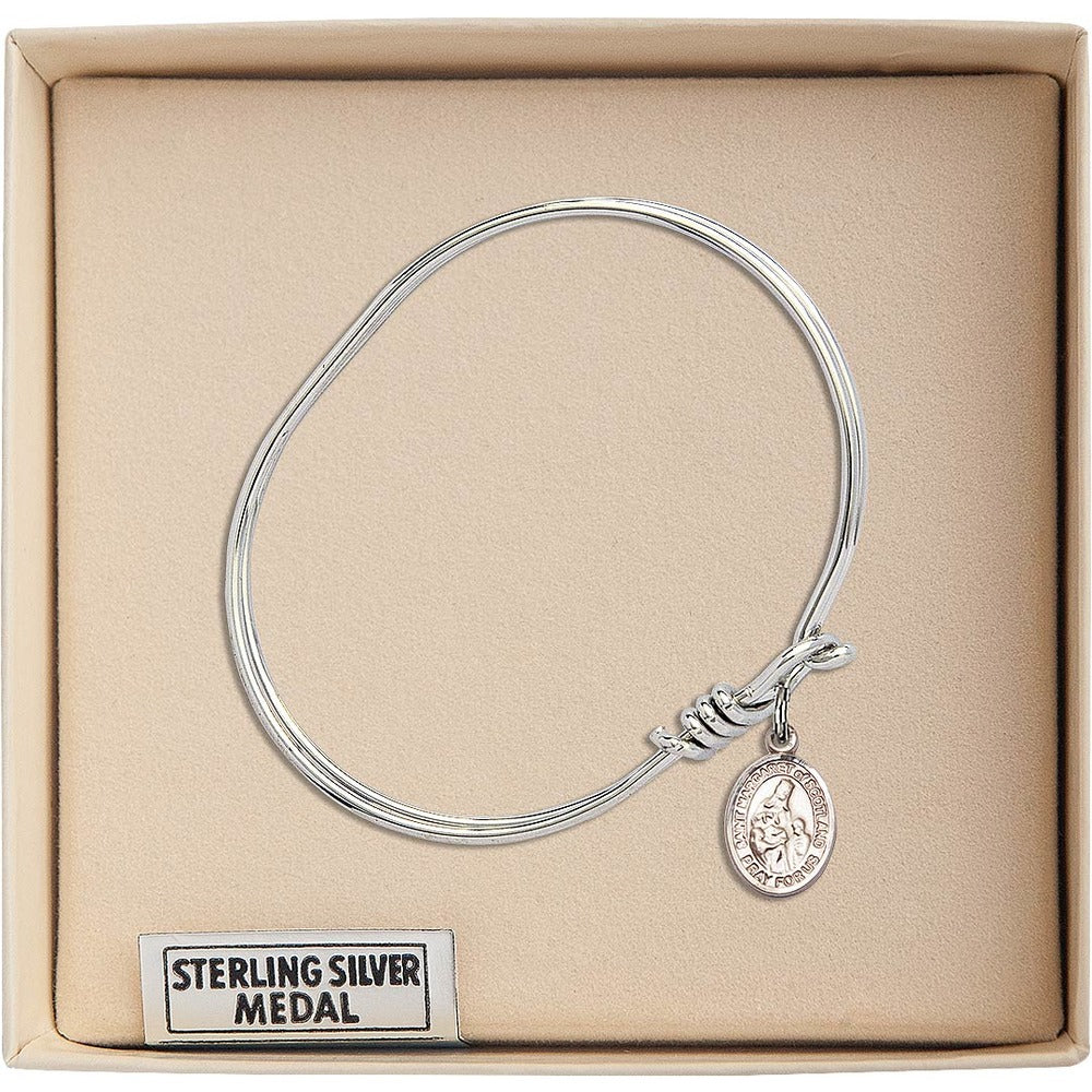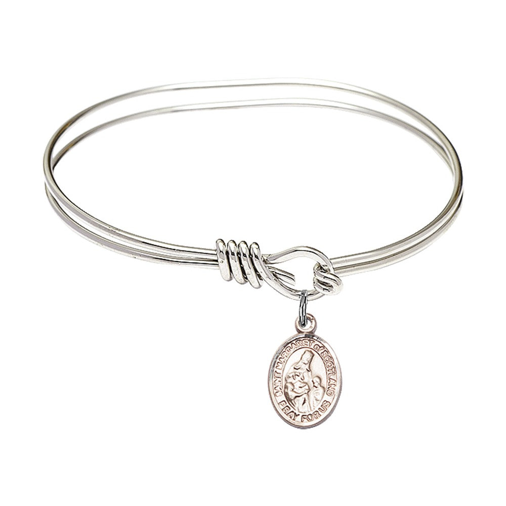 Youth 5 3/4" Rhodium Plated Bangle Bracelet with St. Margaret of Scotland Medal Charm