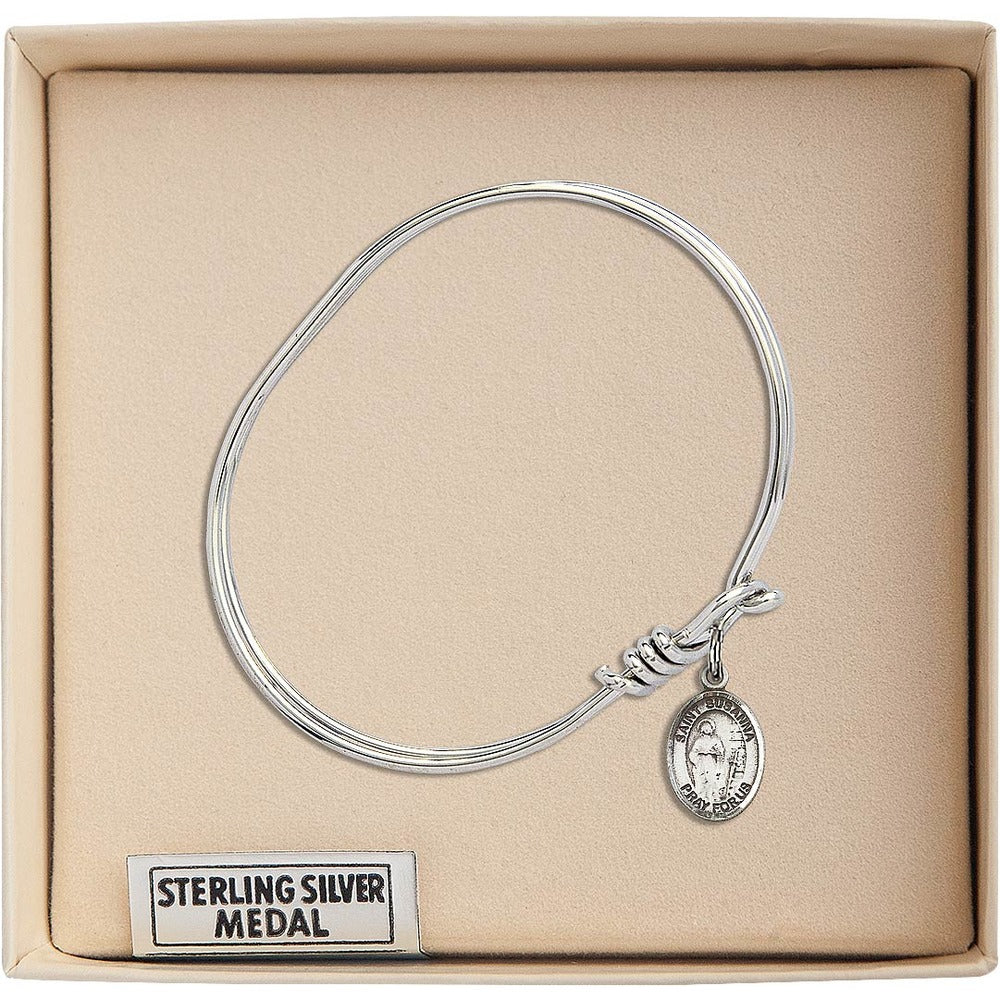 Youth 5 3/4" Oval Rhodium Plated Bangle Bracelet with a Sterling Silver St. Susanna Medal Charm.